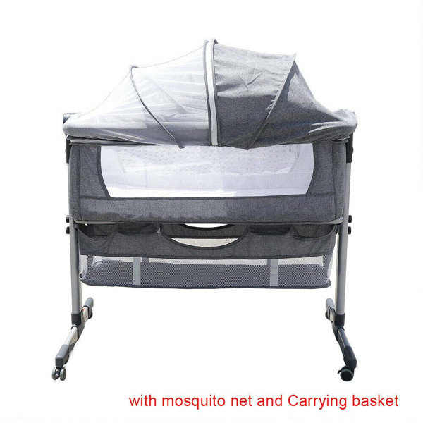 Zoomie Kids Adjustable Height Baby Bed Travel Portable With Safe Net And Storage Basket Wayfair